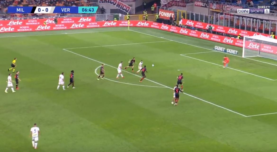 Milani e ka nisur në mënyrën më të keqe të mundshme duelin ndaj Veronës. Në minutën e 7-të, kuqezinjtë gabojnë rëndë duke i dhënë mundësinë Caprarit që ta dërgojë topin në rrjetë.