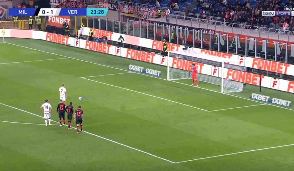 Verona është duke shokuar Milanin në “San Siro”, teksa ka shënuar edhe golin për rezultatin 2-0. Kalinic pengohet brenda zonës së rreptësisë duke shkaktuar 11-metërsh. Nga pika e bardhë Barak tregohet i saktë duke mposhtur Tatarusanun.