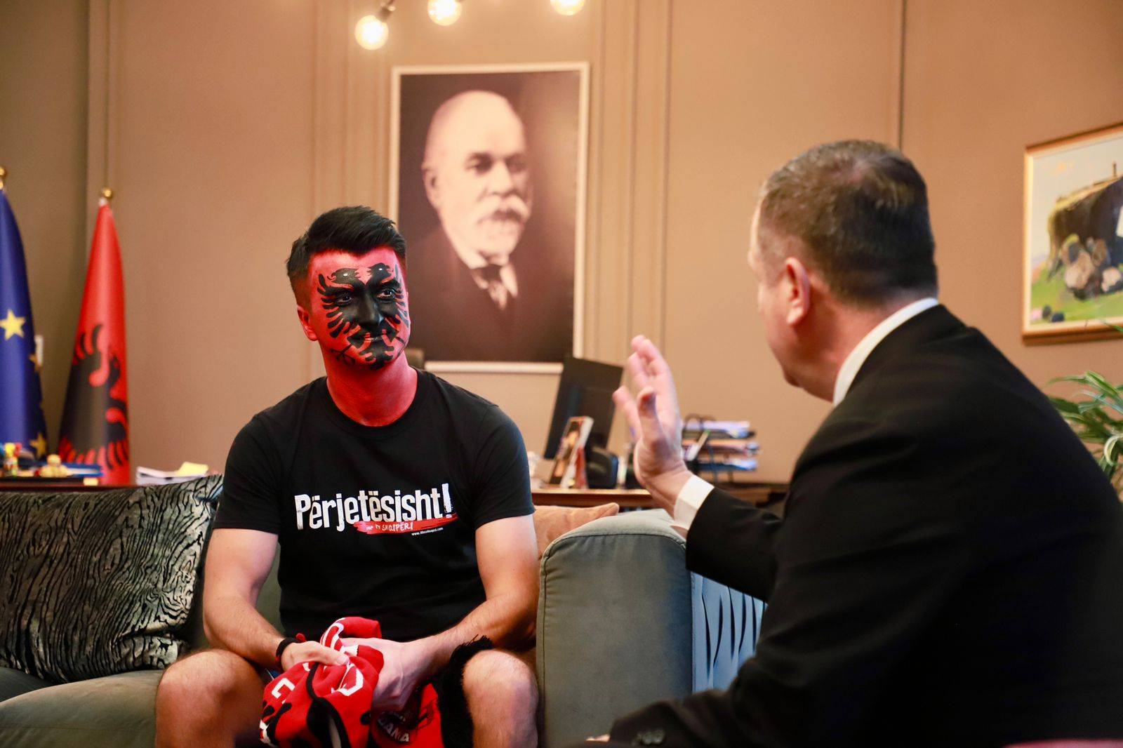 VIDEO/ Ministri Balla takon tifozin e veçantë të Kombëtares: Ndeshja le të jetë një festë