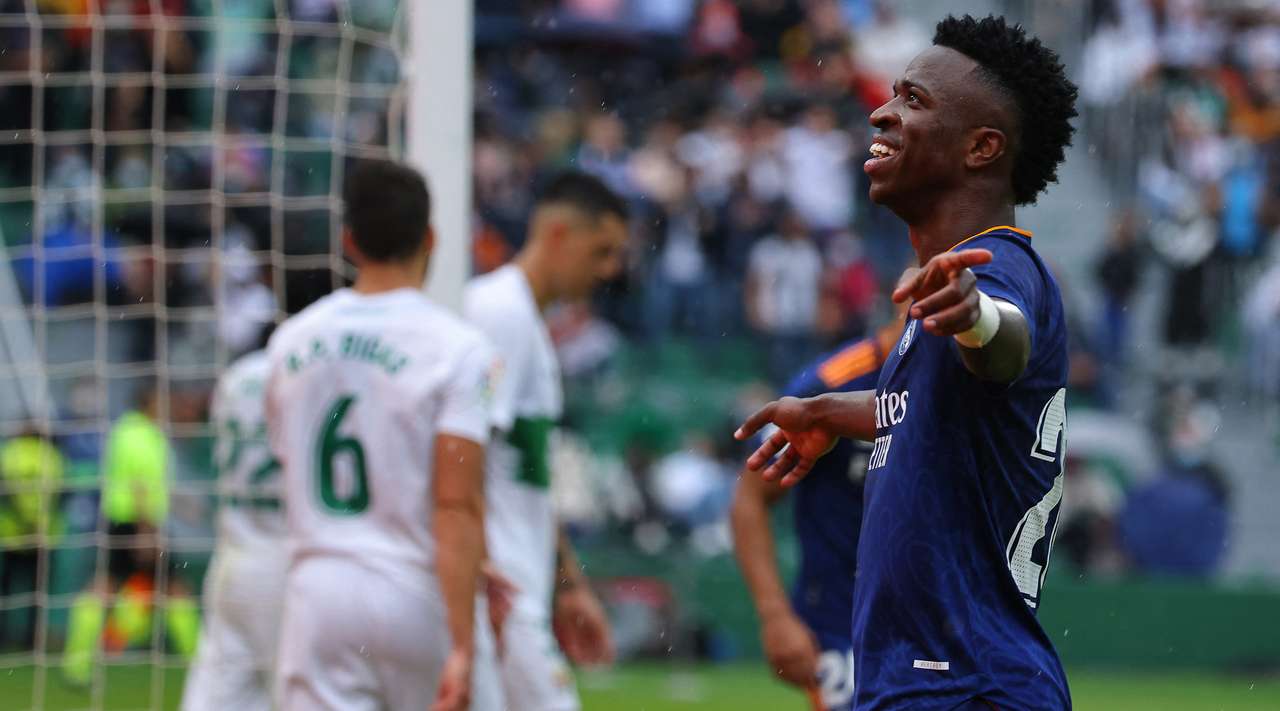 Los Blancos zhbllokuan shifrat në minutën e 22-të me Vinicius i cili dyfishoi shifrat në 73-ën duke gjetur golin e 7-të sezonal. Elche që luajti me 10 lojtarë që nga minuta e 63-të, shënoi golin e vetëm të sfidës në minutën e 86-të me Milla, por vetëm kaq me Realin që për momentin e sheh veten në krye me 24 pikë.