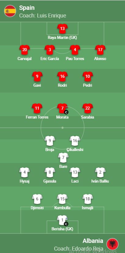 Spanja ndërkohë nuk i ka kursyer yjet, teksa nga minuta e parë do të jenë në sulm Ferran Torres, Morata dhe Sarabia. Në mesfushë do të jenë të shumtë talentet, si Gavi, Rodri dhe Sarabia. /R.Lika-Koha Jonë/