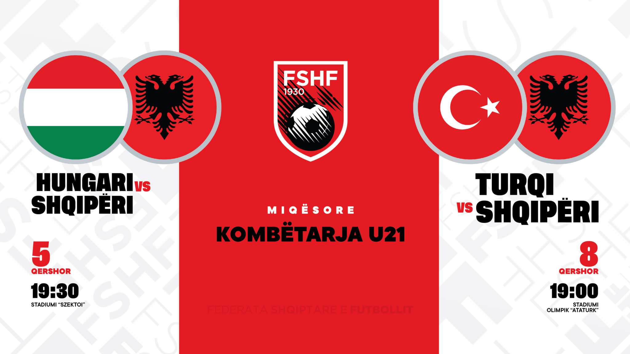 Ndeshja e parë, Hungari U-21 – Shqipëri U-21, do të luhet më 5 qershor në “Széktó Stadium”, në orën 19:30. Ndërsa sfida e dytë, Turqi U-21 – Shqipëri U-21, do të zhvillohet më 8 qershor në “Ataturk Olympic Stadium”, në orën 19:00.