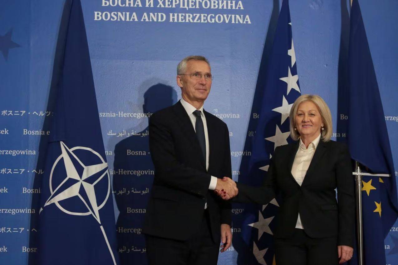 Në konferencën për shtyp në krah të kryetares së Këshillit të Ministrave të Bosnje-Hercegovinës, Borjana Kristo, Stoltenberg tha se ishte i shqetësuar për retorikën përçarëse dhe ndarjes së federatës, si dhe ndikimin e Rusisë jo vetëm në Bosnje dhe Hercegovinë dhe në rajon.